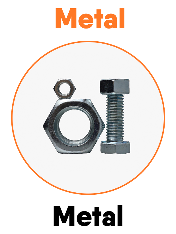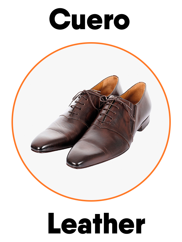 materiales como plástico, caucho, metal, vidrio, tela y cuero,